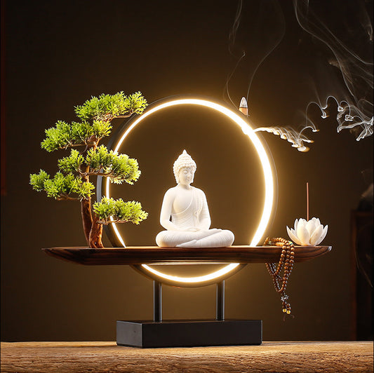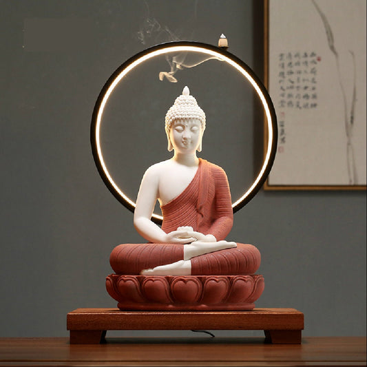 Porcelain Buddha Statue Decorative Set with LED light | Buddha Statue | Gautama Sakyamuni | Meditation | Home Decoration | Incense Burner