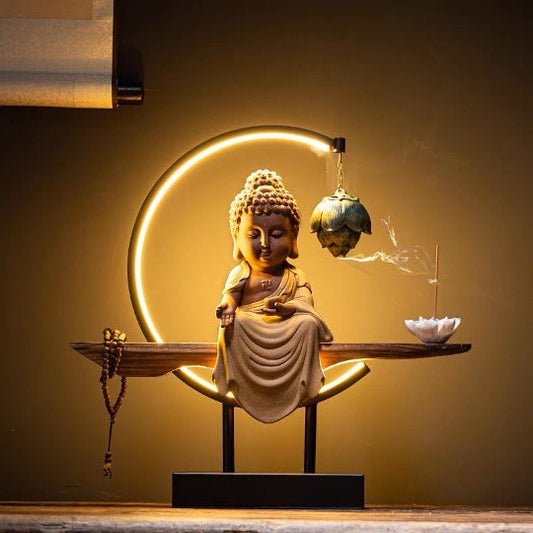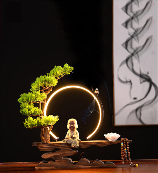 Ceramic Little Monk Decorative Set with LED light and Incense Burner | Buddha Statue | Meditation | Home Decoration | Buddha Decoration