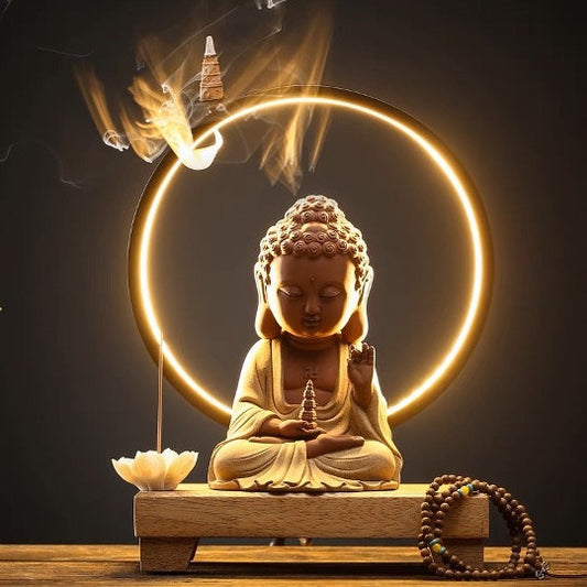 Ceramic Buddha Statue Decorative Set with LED light | Incense Burner | Gautama Sakyamuni | Meditation | Medicine Buddha| Amitabha
