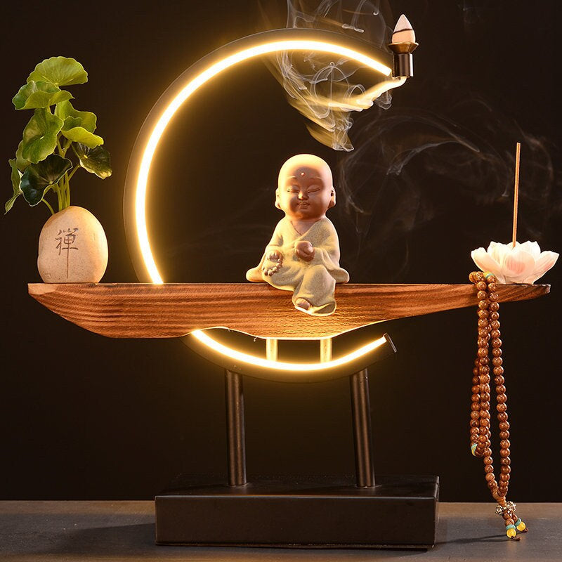 Ceramic Little Monk Decorative Set with LED light and Incense Burner | Buddha Statue | Meditation | Home Decoration | Buddha Decoration