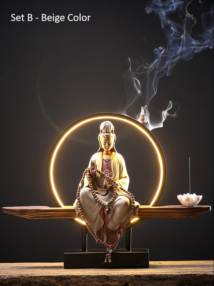 Porcelain Guan Yin Statue Decorative Set with LED light | Buddha Statue | Kuan Yin Quan Yin | Meditation | Home Decoration | Incense Burner